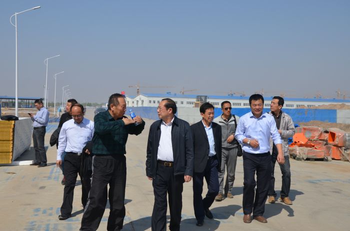 城發(fā)公司黨委書記、董事長、總經(jīng)理張瑞平現(xiàn)場介紹惱包物流園區(qū)的建設(shè)情況。