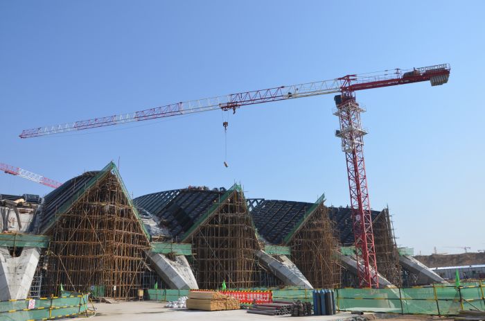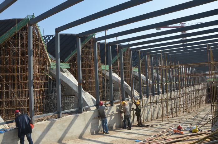 正在施工中的長途客運東站進(jìn)車坡道。
