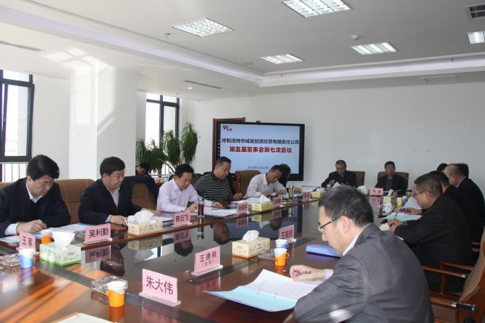 2018年3月23日,城發(fā)公司召開第五屆董事會第七次會議。會議聽取、審議、表決了《城發(fā)公司2017年度工作報告及2018年度工作安排》、《城發(fā)公司2017年度財務報告》、《城發(fā)公司2017年度預算執(zhí)行情況及2018年度預算(草案)報告》等15項議案。議案內容涉及公司2017年經營情況,2018年預算及公司重大投資、對外擔保等事項,議案均獲得董事一致表決通過。