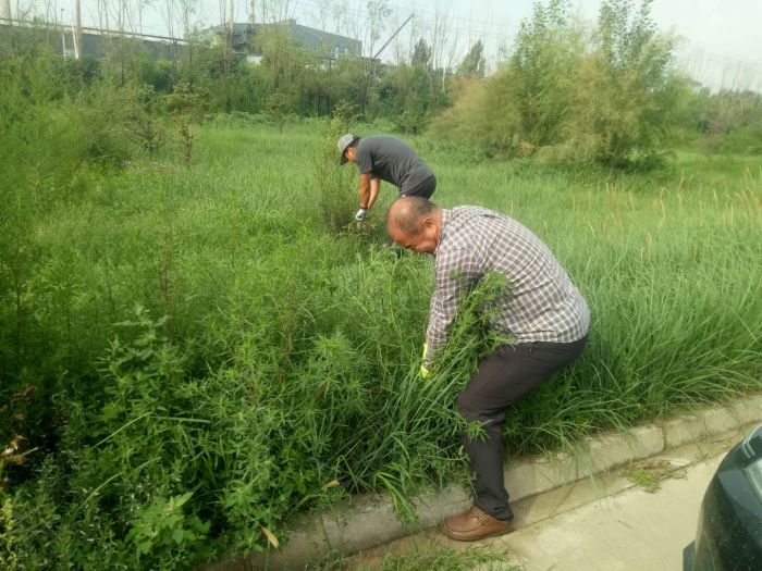 2018年7月18日、19日上午,城發(fā)物流公司組織全體男職工在億陽物流園區(qū)開展拔草活動。