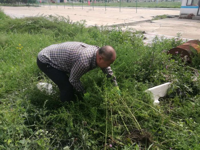 上午七點(diǎn),大家做好分工合作,不怕臟,不怕累,挽起袖子和褲腿開始勞動起來,拔草、清運(yùn)雜草等各項(xiàng)工作井然有序。戶外溫度高達(dá)30多度,大家頂著烈日酷暑,個個汗流浹背、干勁十足,勞動場面熱火朝天。雖然園區(qū)雜草分布范圍大,想徹底清除雜草并非易事,但是職工們不懼困難,依然在烈日下的草坪中認(rèn)真地尋找雜草并將其清除干凈。經(jīng)過大家兩天的共同努力,園區(qū)的雜草已基本清除干凈,億陽物流園區(qū)的整體環(huán)境煥然一新。