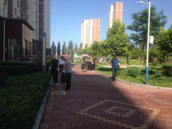客服提升小組在小區(qū)明顯位置擺放展臺(tái)和宣傳畫,向業(yè)主征詢服務(wù)滿意度,發(fā)放關(guān)于消防安全等宣傳單;保潔綠化小組成員配合小區(qū)全體保潔人員開展清掃環(huán)路衛(wèi)生、撿拾草坪內(nèi)的垃圾、清洗垃圾箱等衛(wèi)生清潔工作;工程提升小組成員對(duì)金城小區(qū)的單元門開啟不靈、關(guān)閉不嚴(yán)等問題進(jìn)行了現(xiàn)場(chǎng)維修。