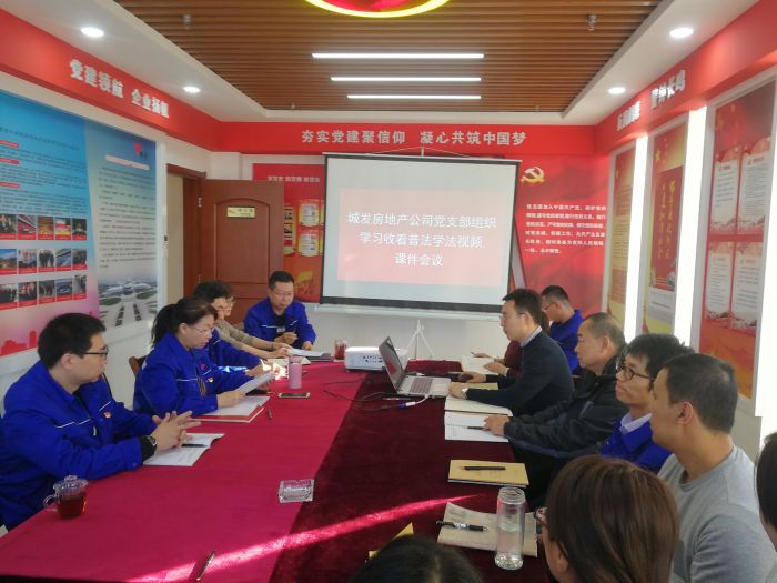 11月22日,房地產(chǎn)公司黨支部組織公司全體黨員、干部職工16人在城發(fā)集團11樓黨員之家學習收看普法學法視頻課件。