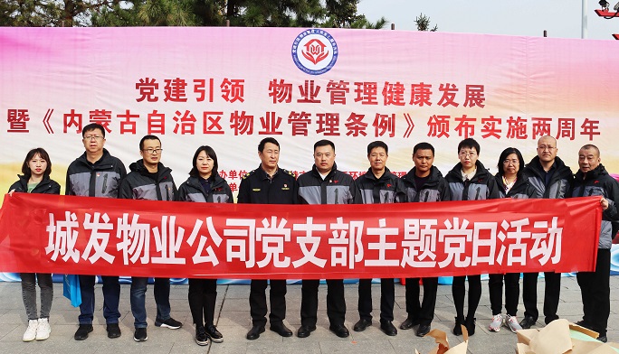 10月10日上午,城發(fā)物業(yè)公司黨支部在開展“加強(qiáng)黨建引領(lǐng) 促進(jìn)物業(yè)發(fā)展”主題黨日活動(dòng)中,組織黨員干部11人赴大召廣場參加市住宅小區(qū)環(huán)境秩序管理局舉辦的“黨建引領(lǐng)物業(yè)管理健康發(fā)展”暨《內(nèi)蒙古自治區(qū)物業(yè)管理?xiàng)l例》頒布實(shí)施兩周年主題宣傳月活動(dòng),向廣大市民群眾普及物業(yè)法律知識(shí),積極宣傳公司服務(wù)發(fā)展理念。