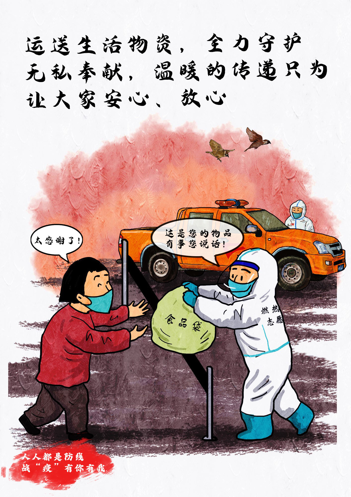 今天,城市燃熱集團(tuán)職工高帆手繪了一組組集團(tuán)抗疫保供的漫畫鏡頭,記錄溫暖感人的瞬間。